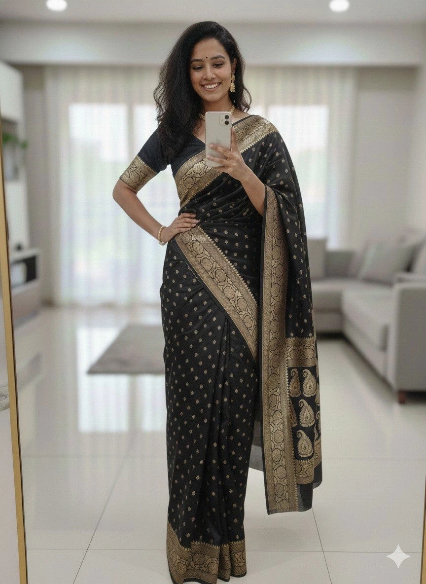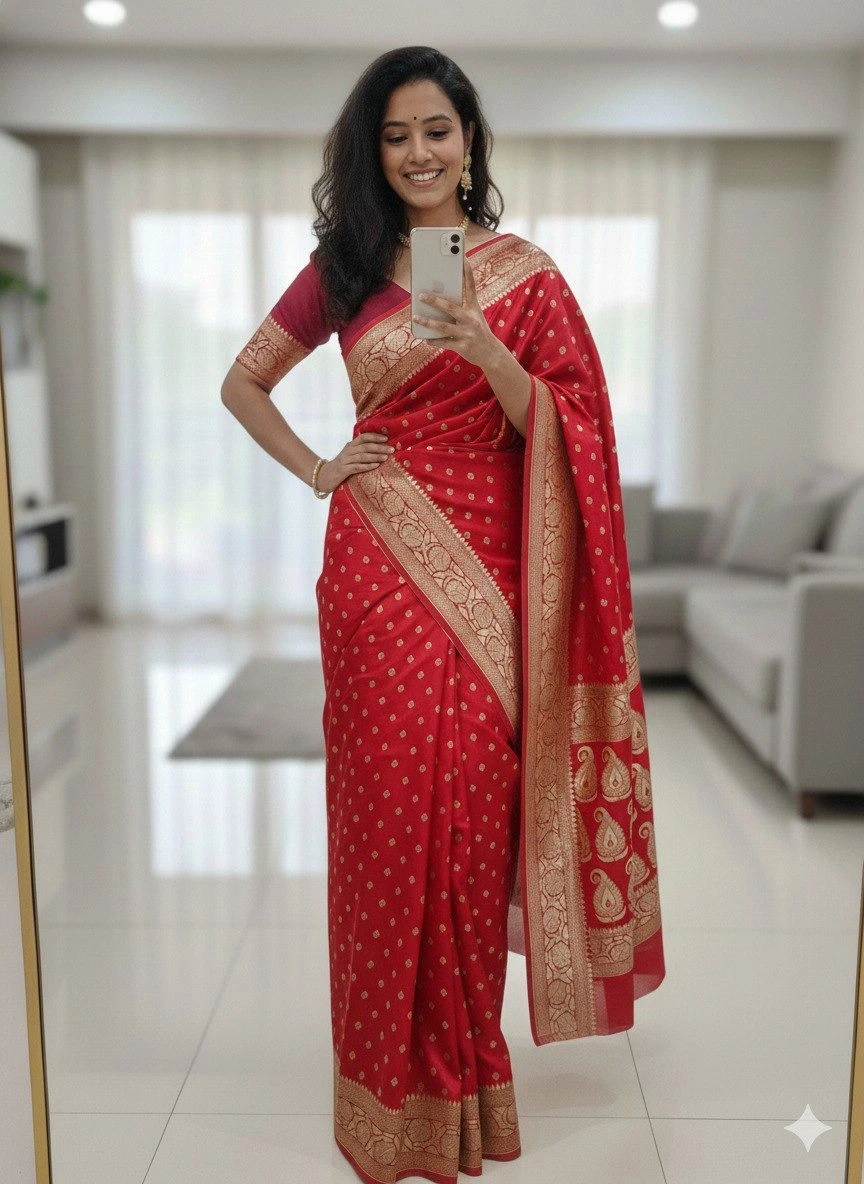 | Design | Rich Pallu and Jacquard Pattern Work on All Over the Saree |