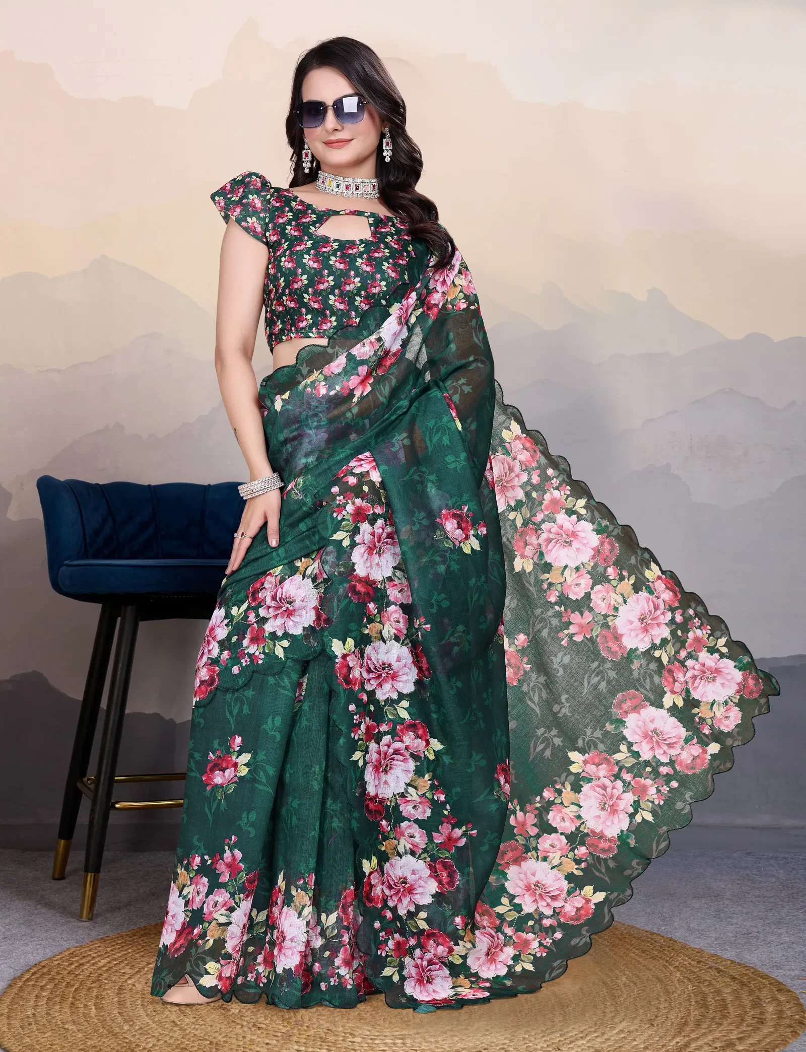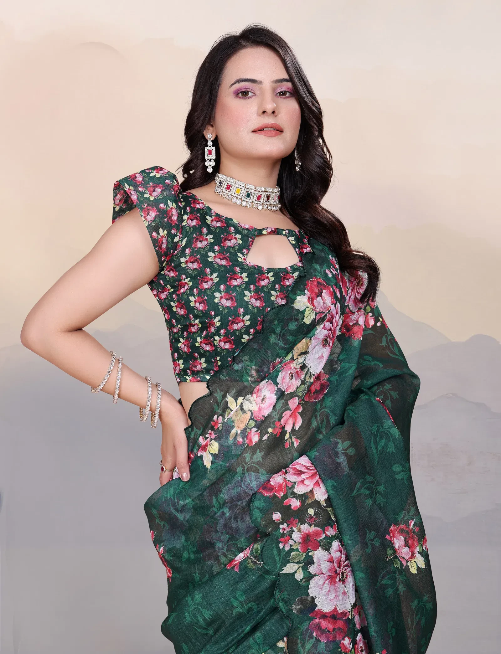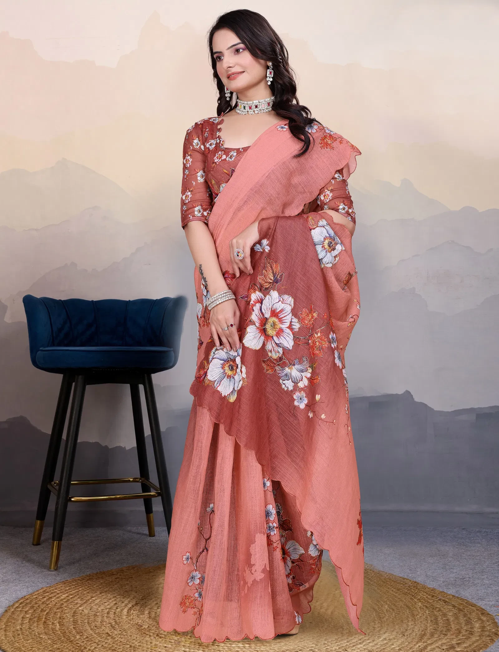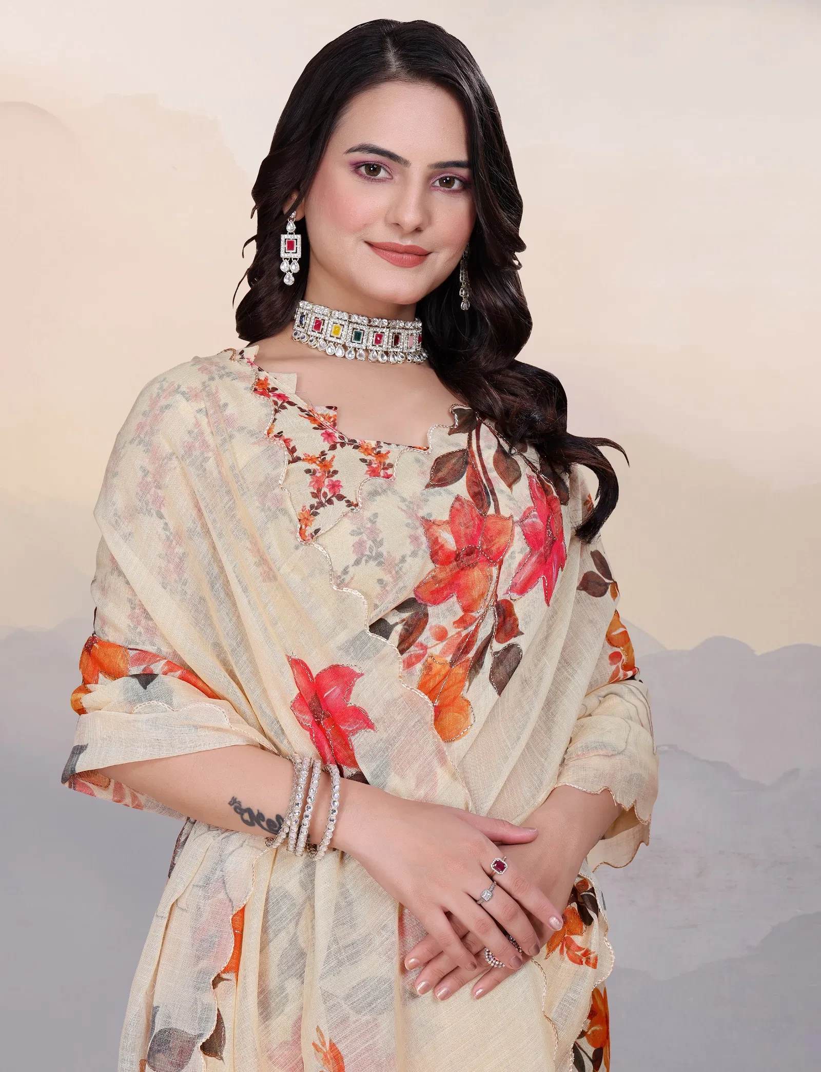Product Name Adhya Cotton Linen Aari Bharat Work with Digital Printed Saree Collection