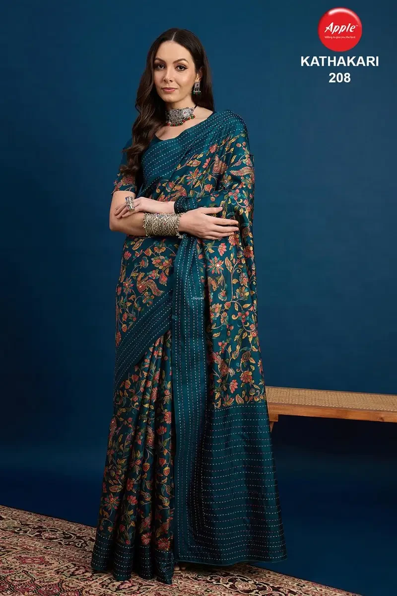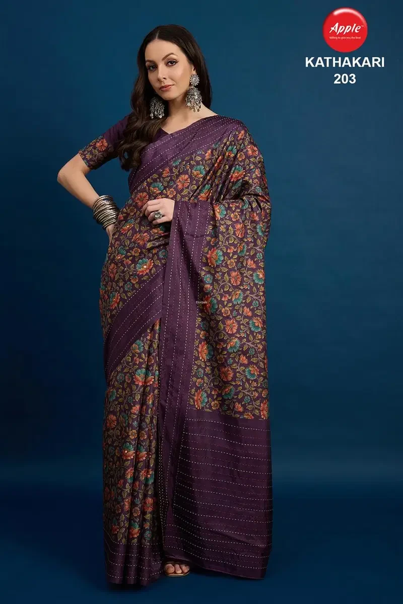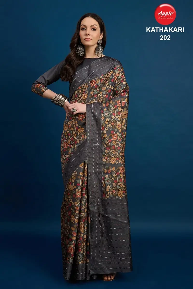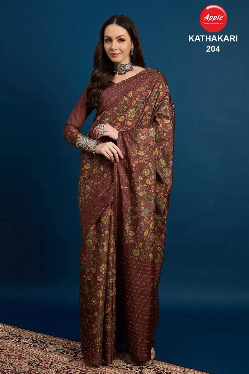 Apple Kathakari Vol 2 Silk Blend Brown Printed Saree Collection