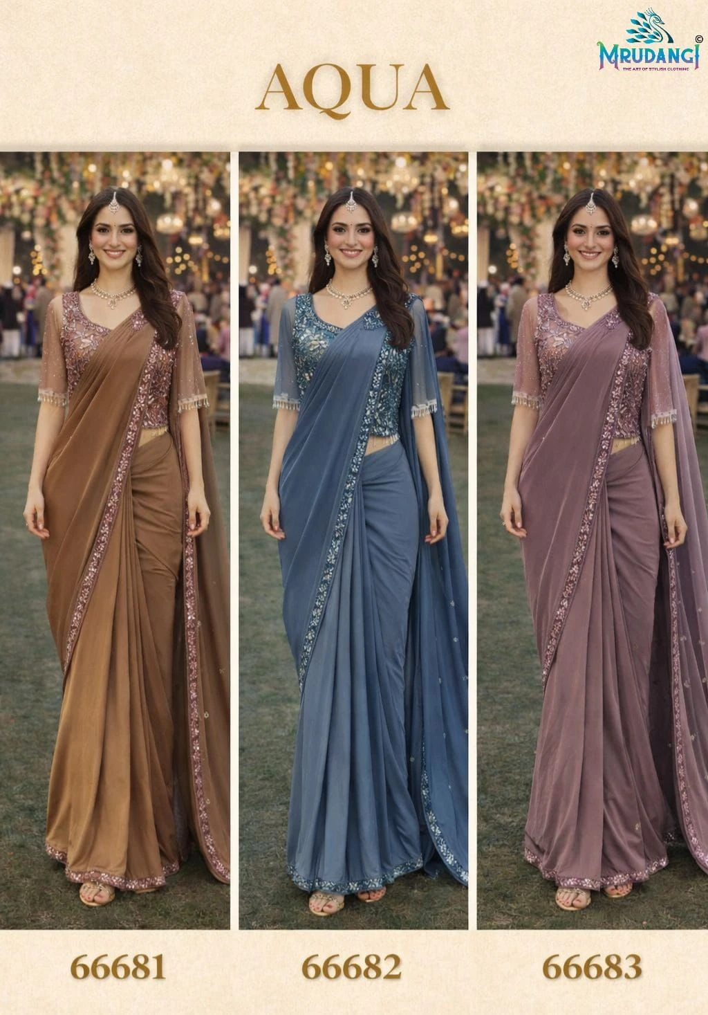 Product Name Aqua 66681 to 66683 Premium Lycra Ready to Wear Designer Saree Collection