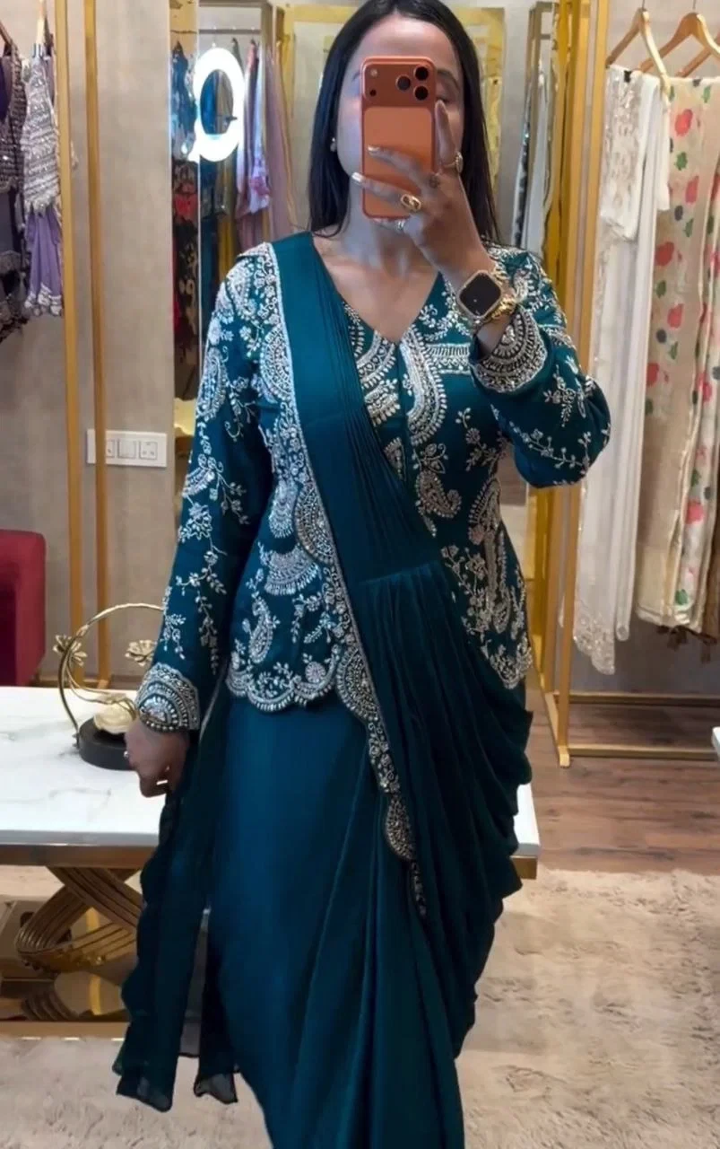 | Product Name | Bt 7152 Chinon Embroidery Sequence Worked Koti with Ready to Wear Saree |