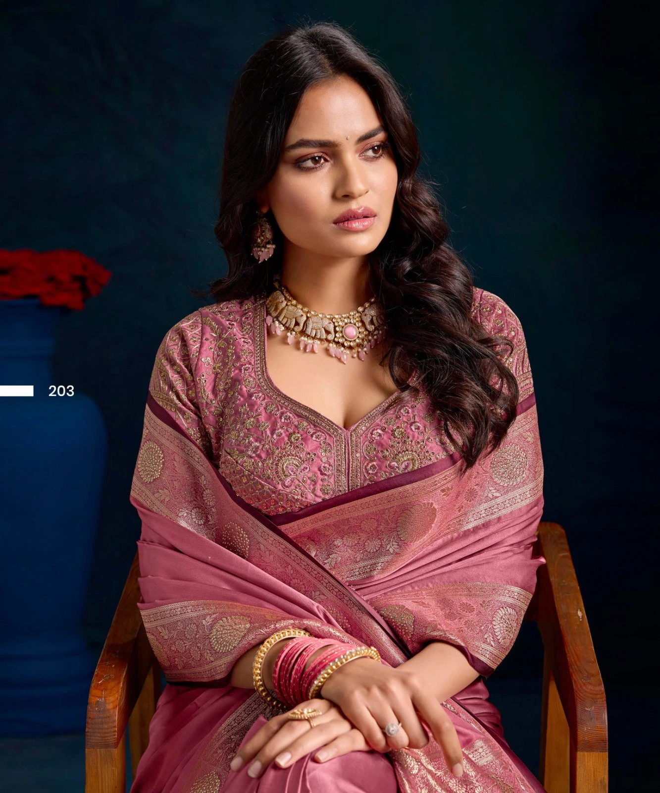 | Saree | Top Dyed Weaving with Embroidered and Jarkan Work with Stitched Blouse |