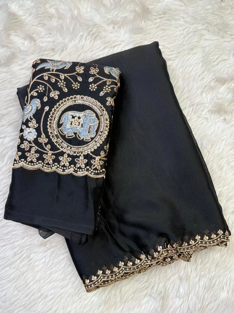 | Product Name | Maniratan Ah Black Rangoli Elephant Embroidery Saree Collection |