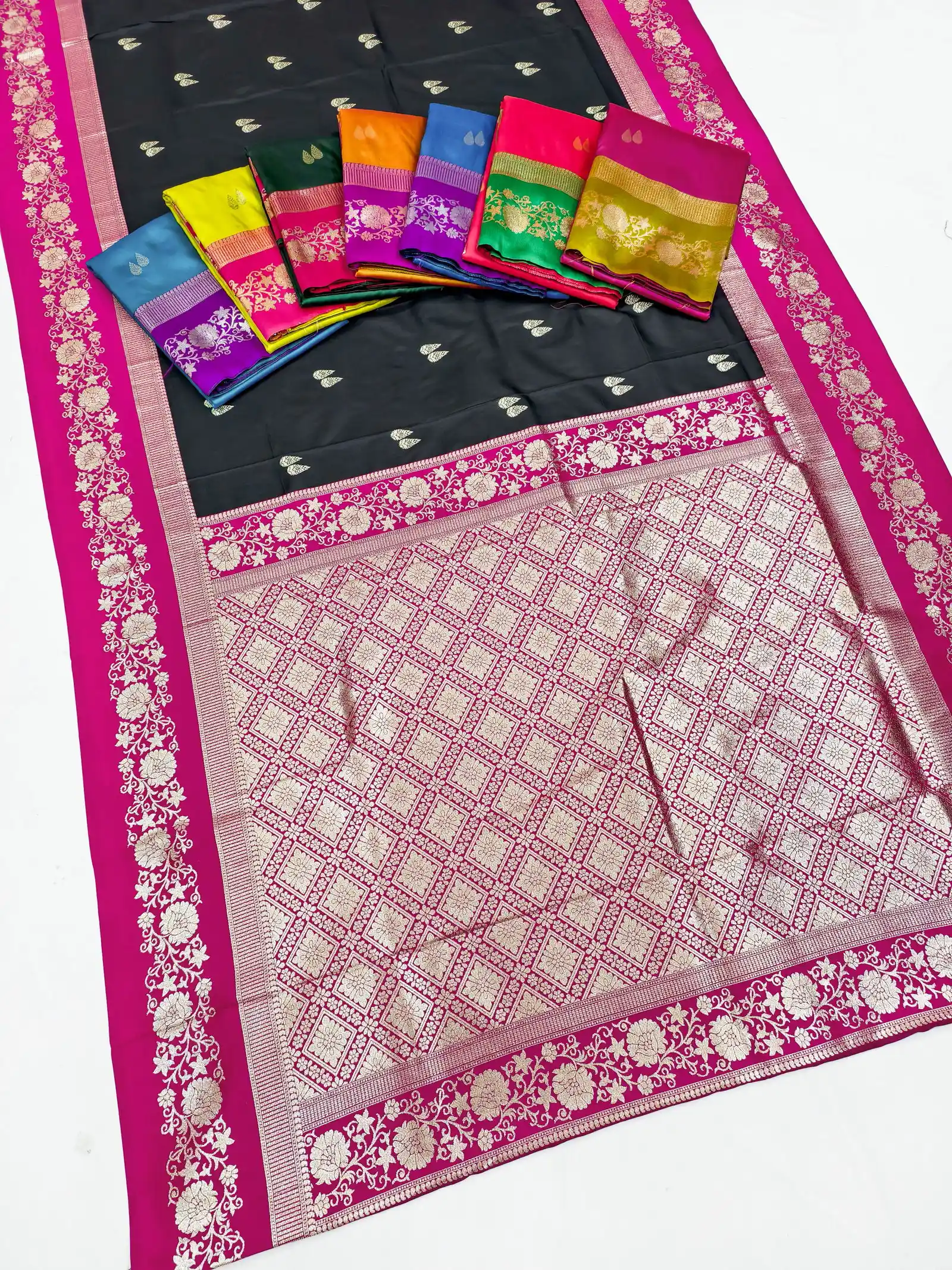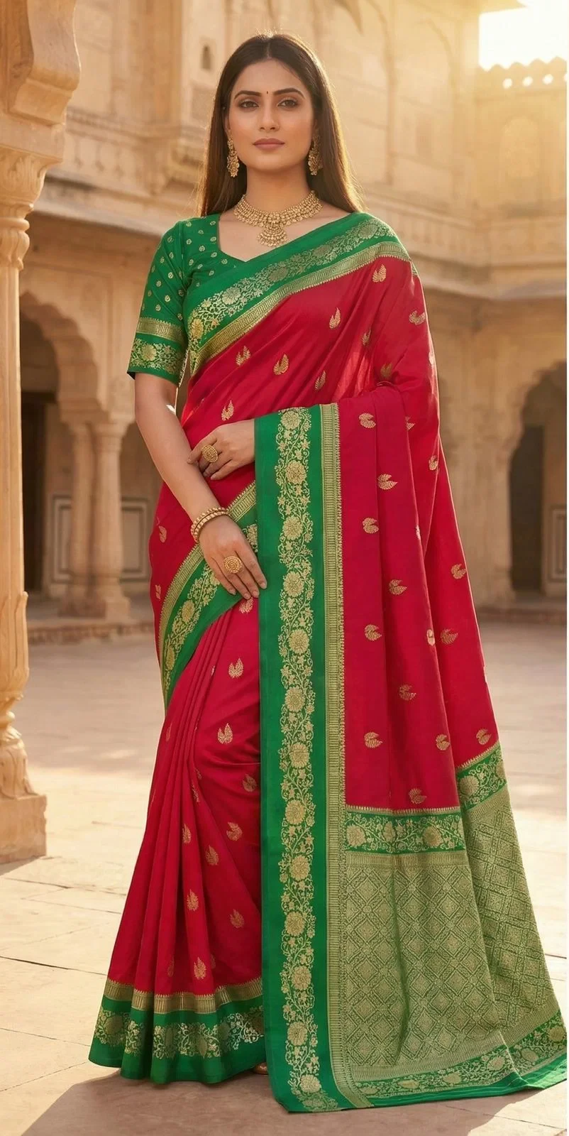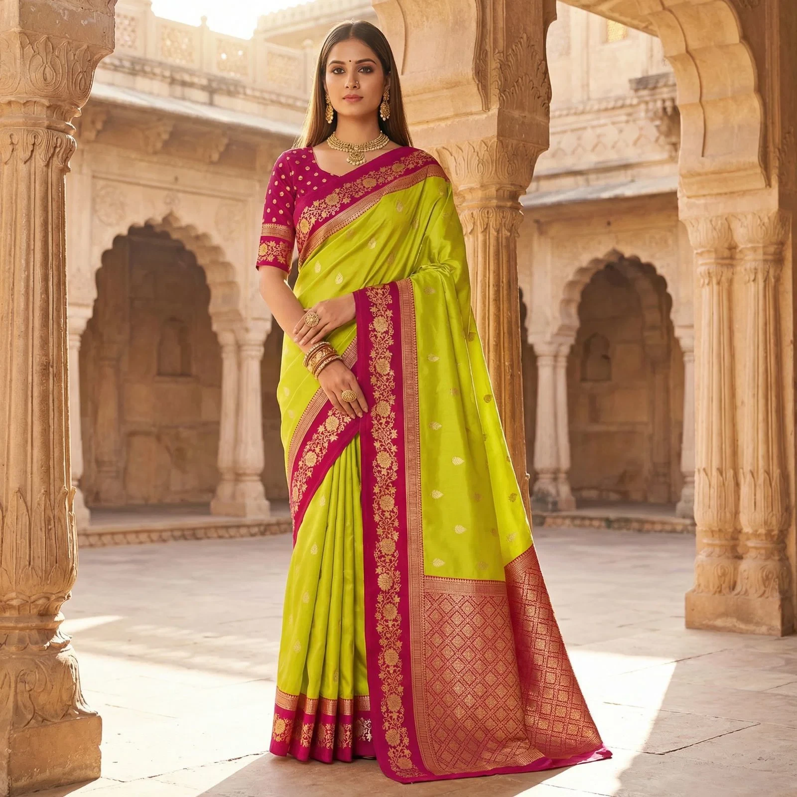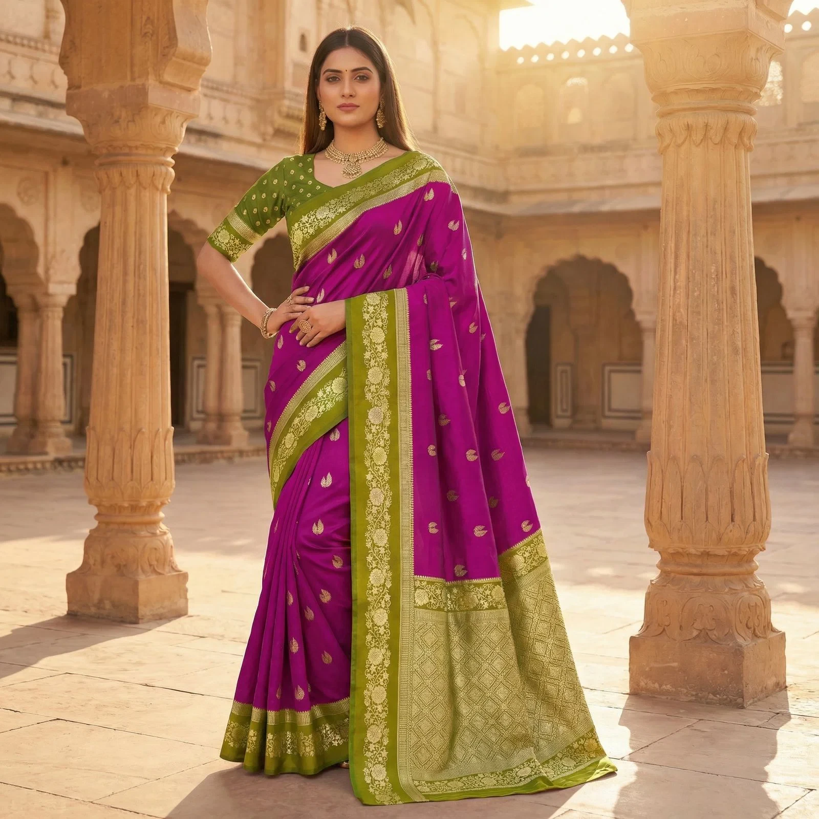 | Saree | Premium Soft Banarasi Silk with Zari Weaving All Over and Meenakari Woven Pallu |