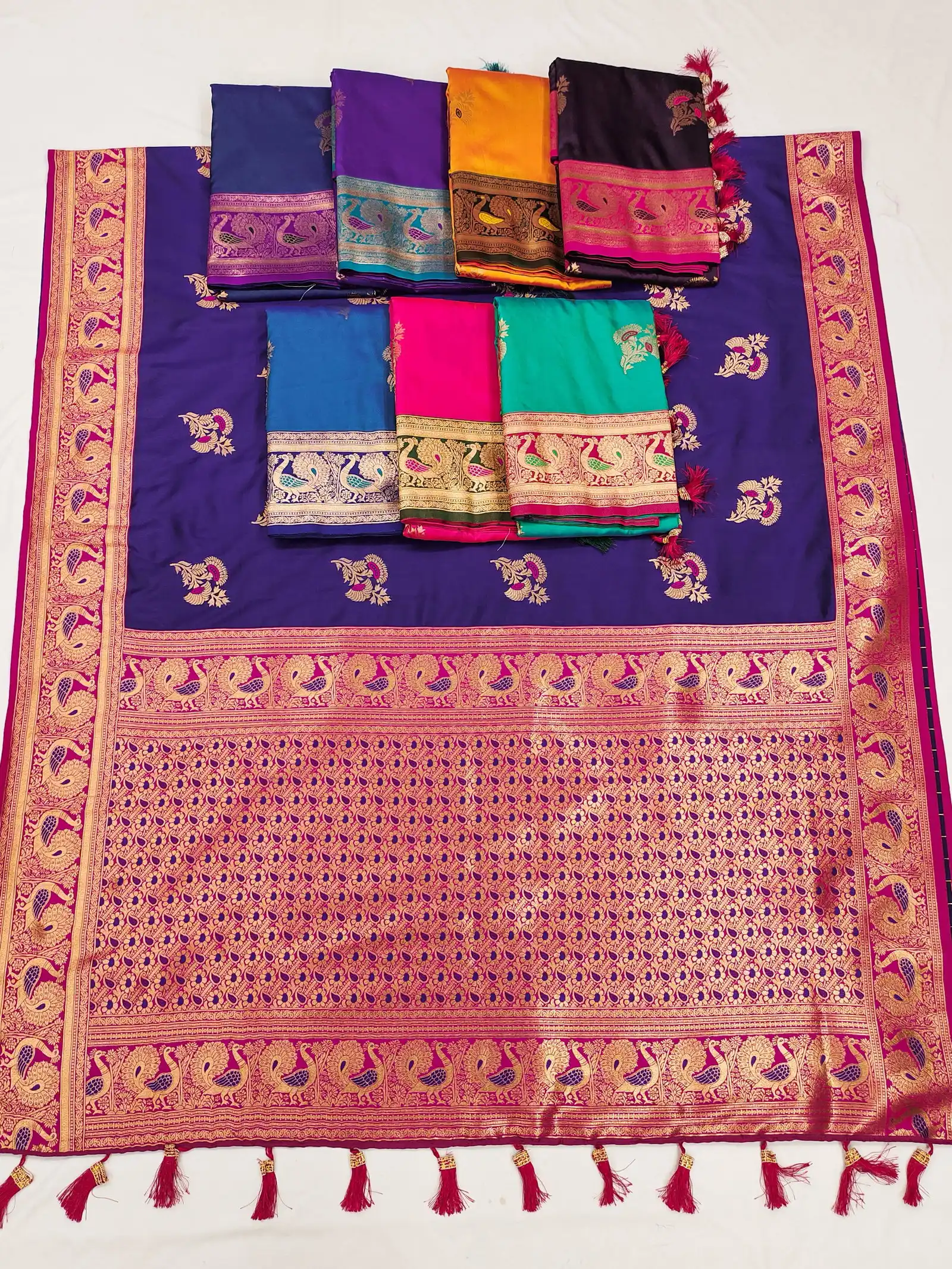 | Saree | Soft Paithani Silk with Zari Weaving Design and Meenakari Weaving Rich Pallu with Meenakari Weaving Border Tassels Attached at Pallu End |