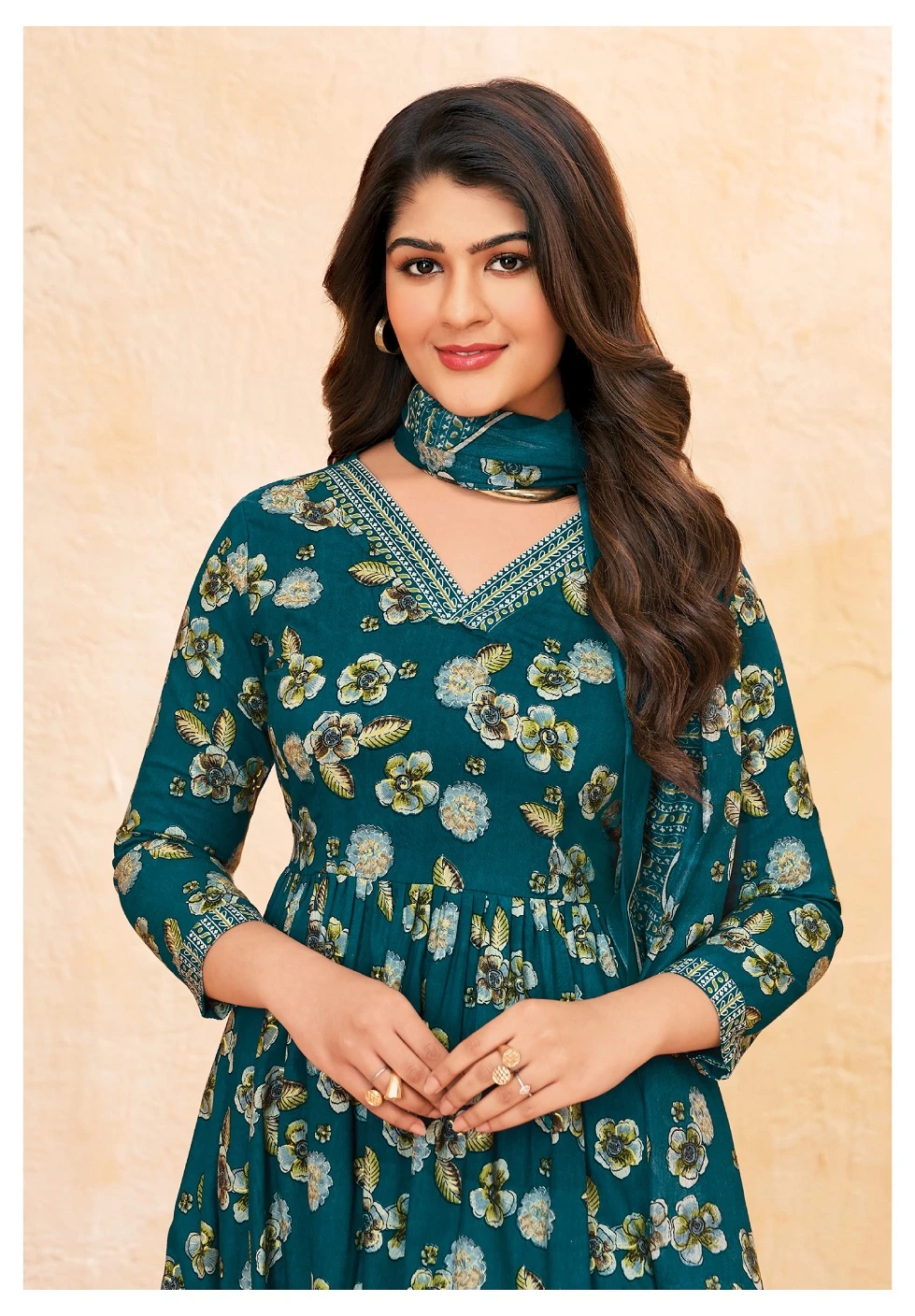 | Top | Heavy Cotton Printed Anarkali Style With Foil Print With 3/4 Sleeves |