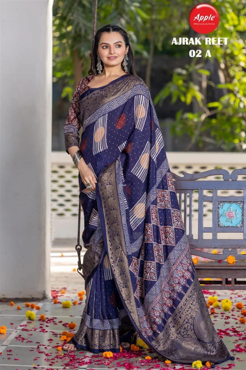 | Product Name | Apple Ajrak Reet Viscose Silk Lavender Printed Saree Collection |
