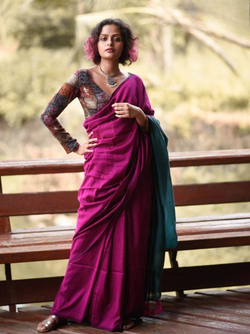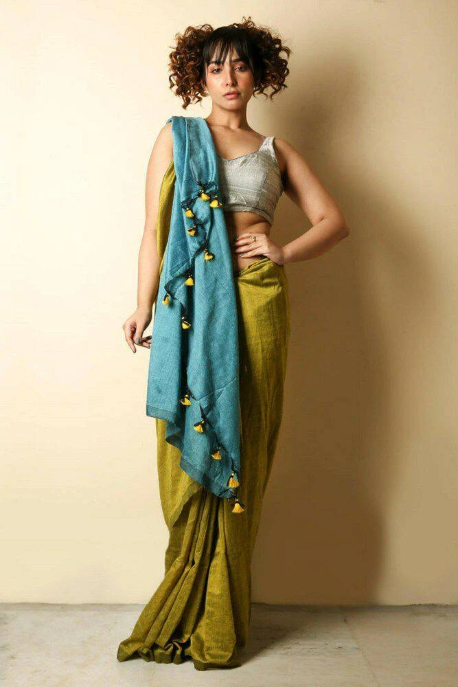 Blouse Contras Blouse and Pallu with Beautiful Latkans