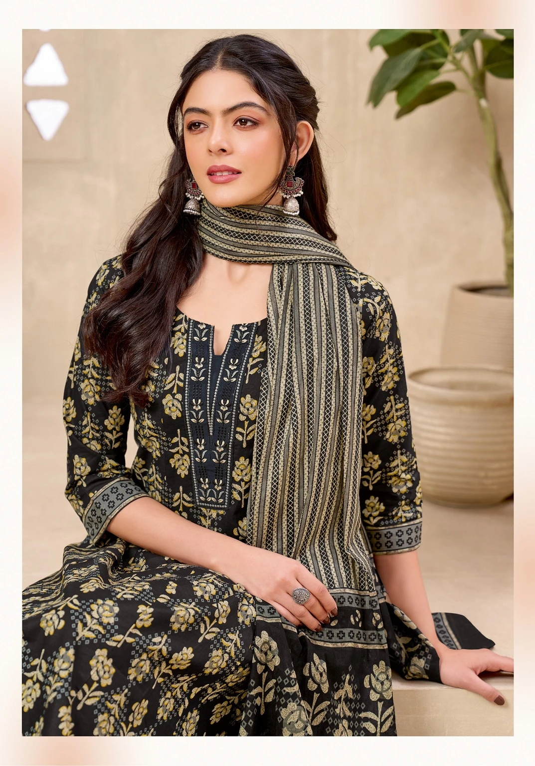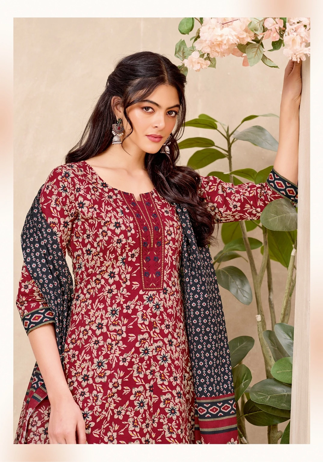 | Top | Pure Cotton Printed With Neck Embroidery Work |