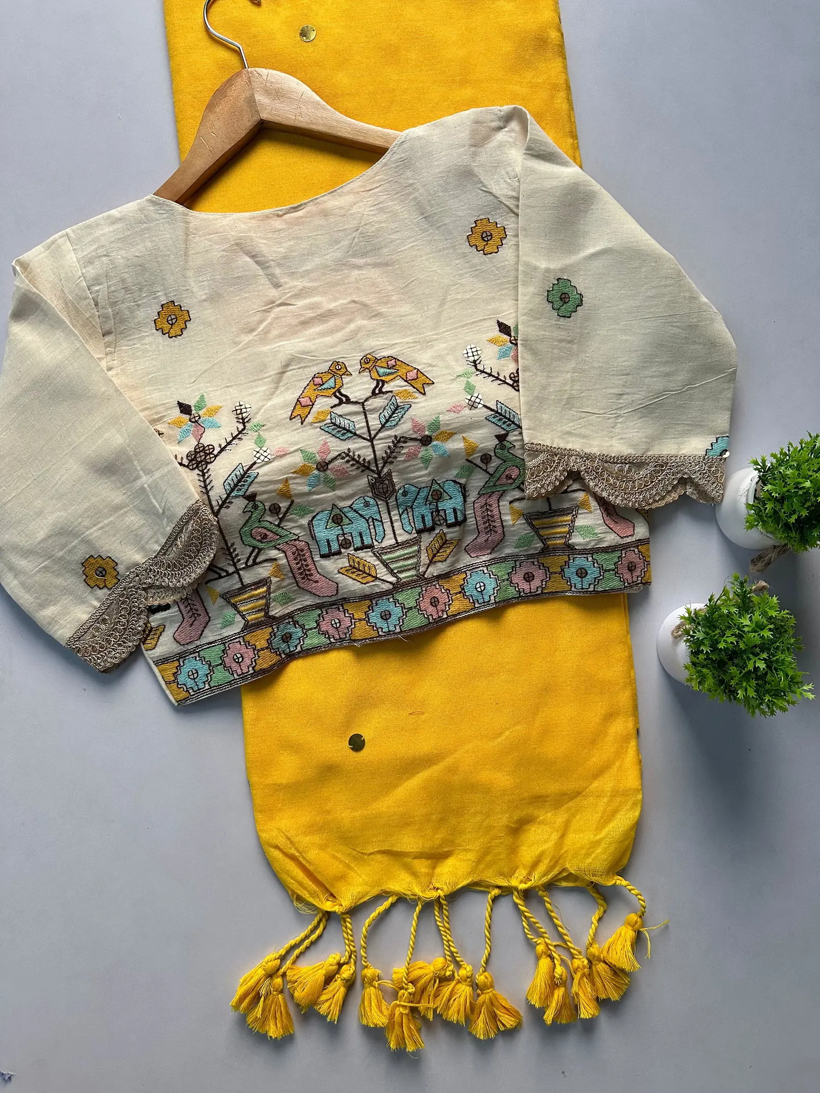 | Blouse | Pure Khadi Blouse with Work ( Size 38 Alterable Upto 42) |