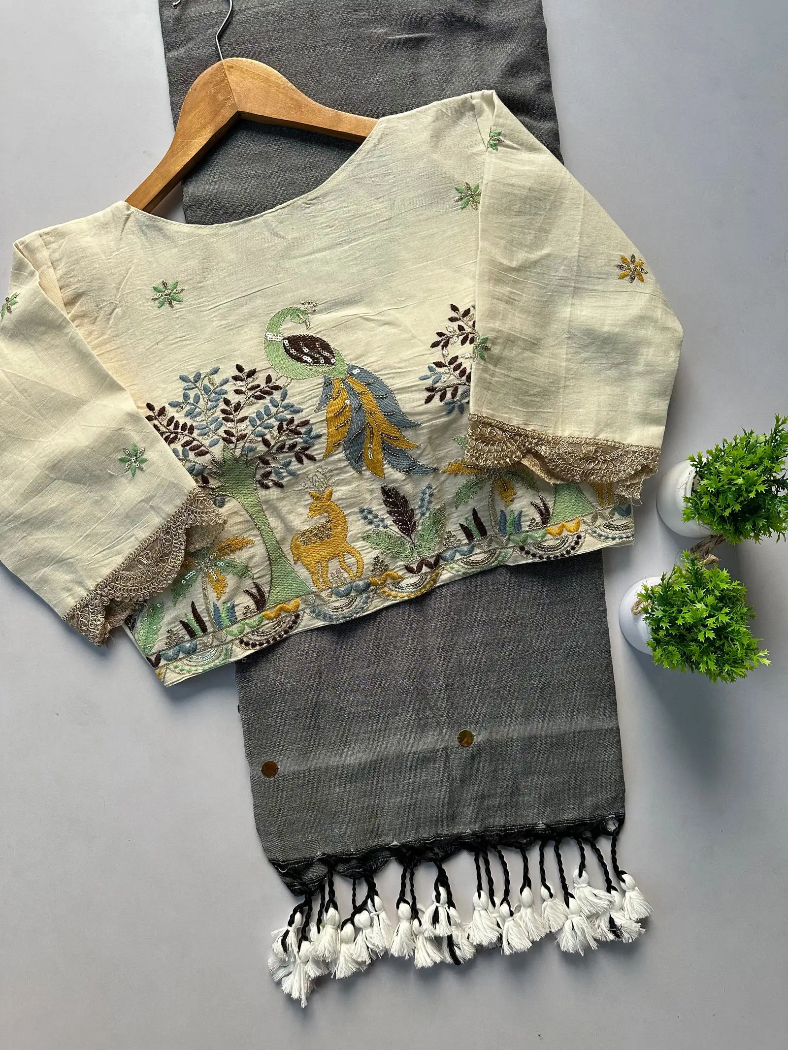 | Saree | Khadi Cotton with Heavy Sequins Work |