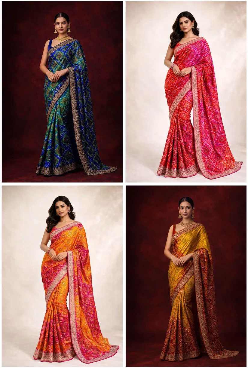 | Product Name | Mahek 215 Chinon Silk Bandhani Codding Stylish Saree Collection |