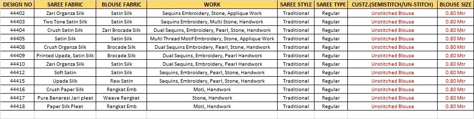| Product Name | Mahotsav Norita 44400 Rasika Zari Organza Silk Embroidered Saree Collection |