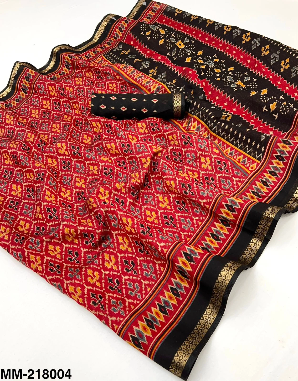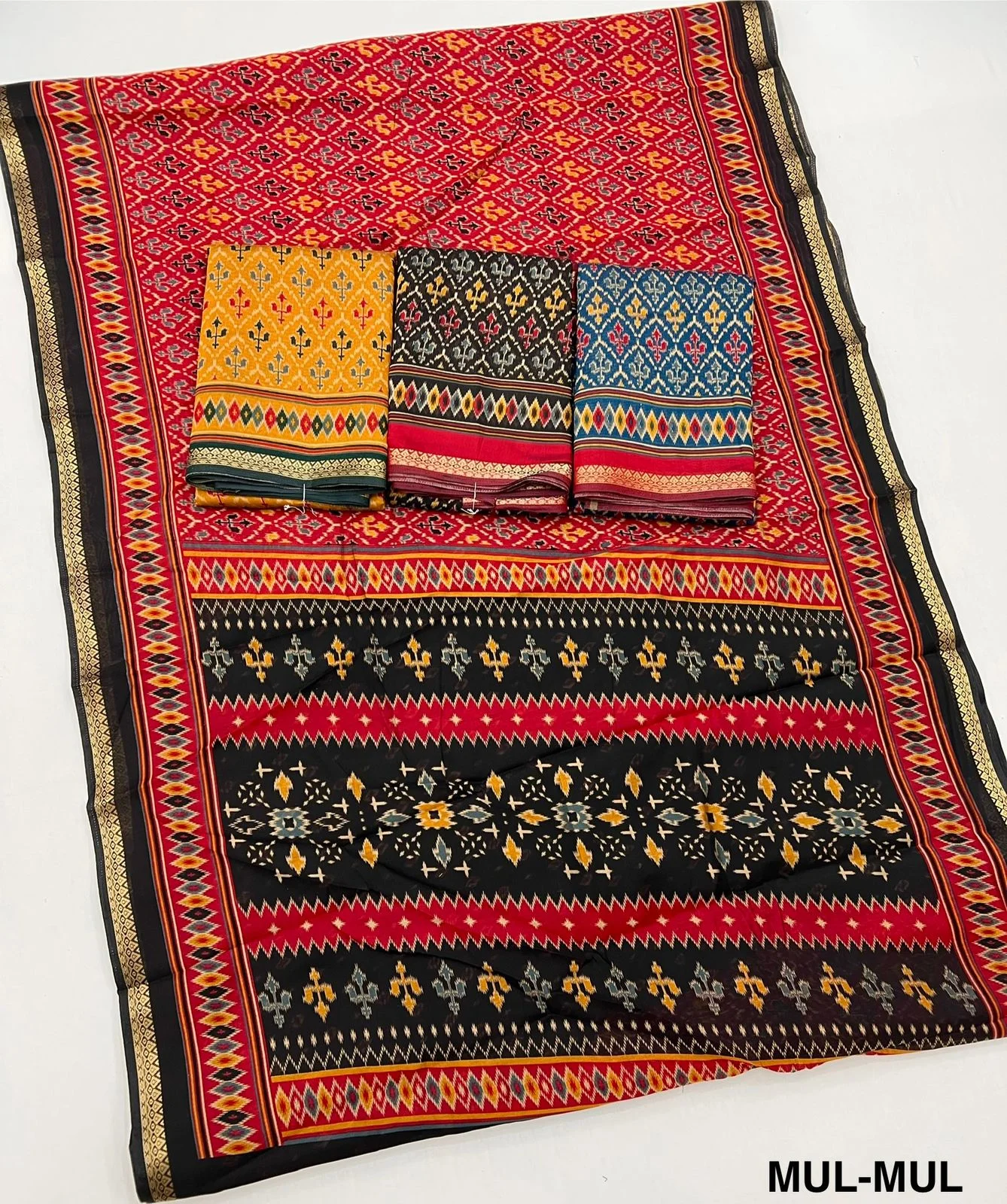 Fabric Soft Mul Cotton with Trending Patola Print & Beautiful Pallu & Zari Border
