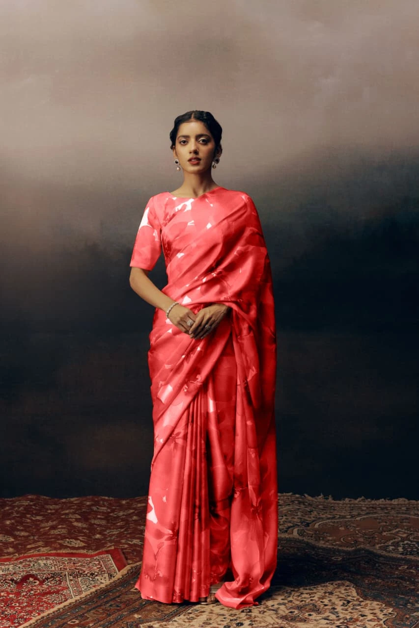 Fabric Heavy Japan Satin Saree Crafted with Floral Print All Over