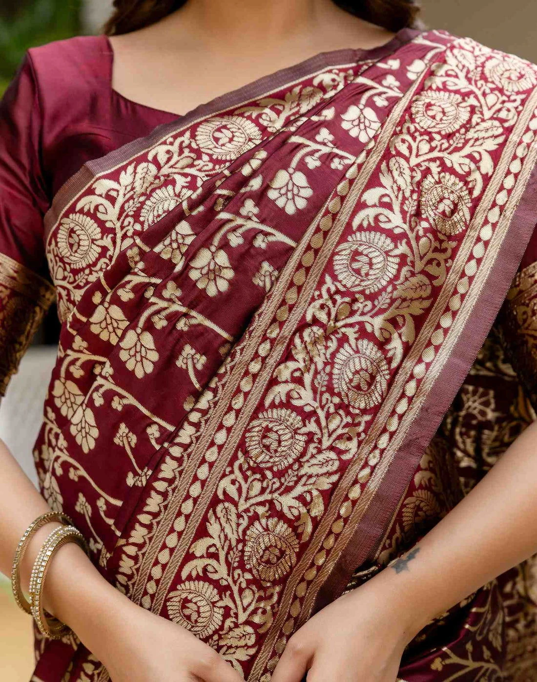 | Saree/blouse | Silk with Woven Work |