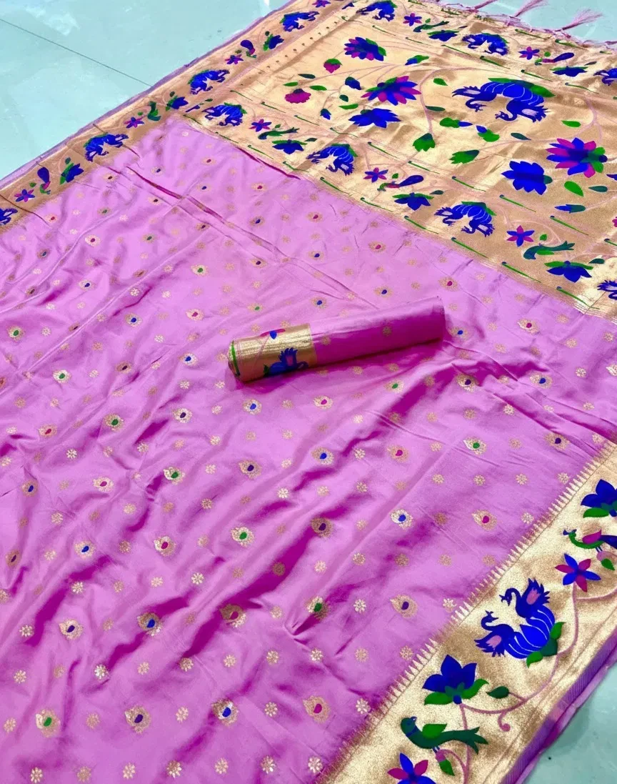 Saree Pure Soft Kanchivram Paithani Silk Original Pure Zari Weaving and Minakari Peacock Border Heavy Mina Zari Weaving Pallu