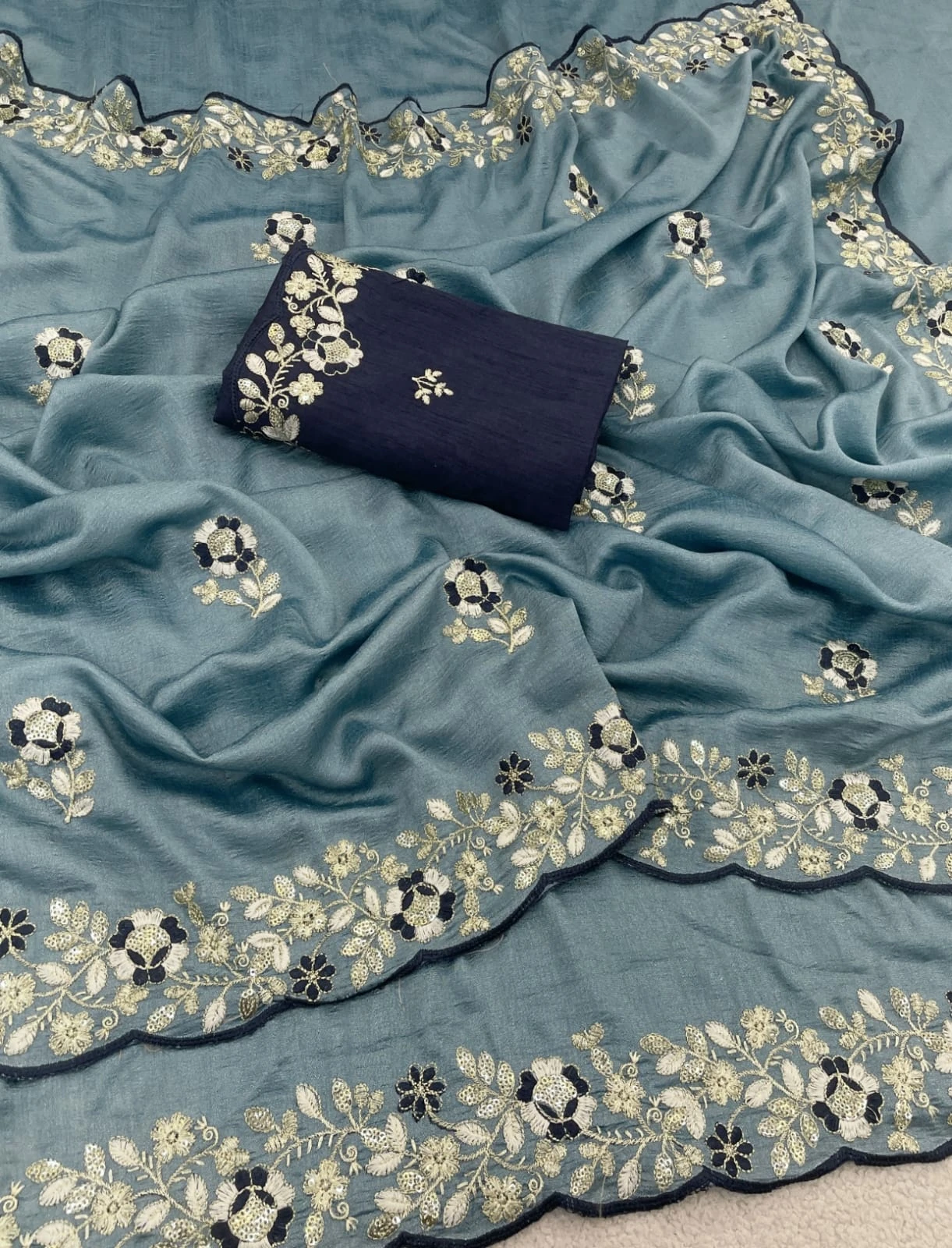 | Product Name | Vt 834 T Soft Vichitra Silk Thread Work Designer Saree Collection |