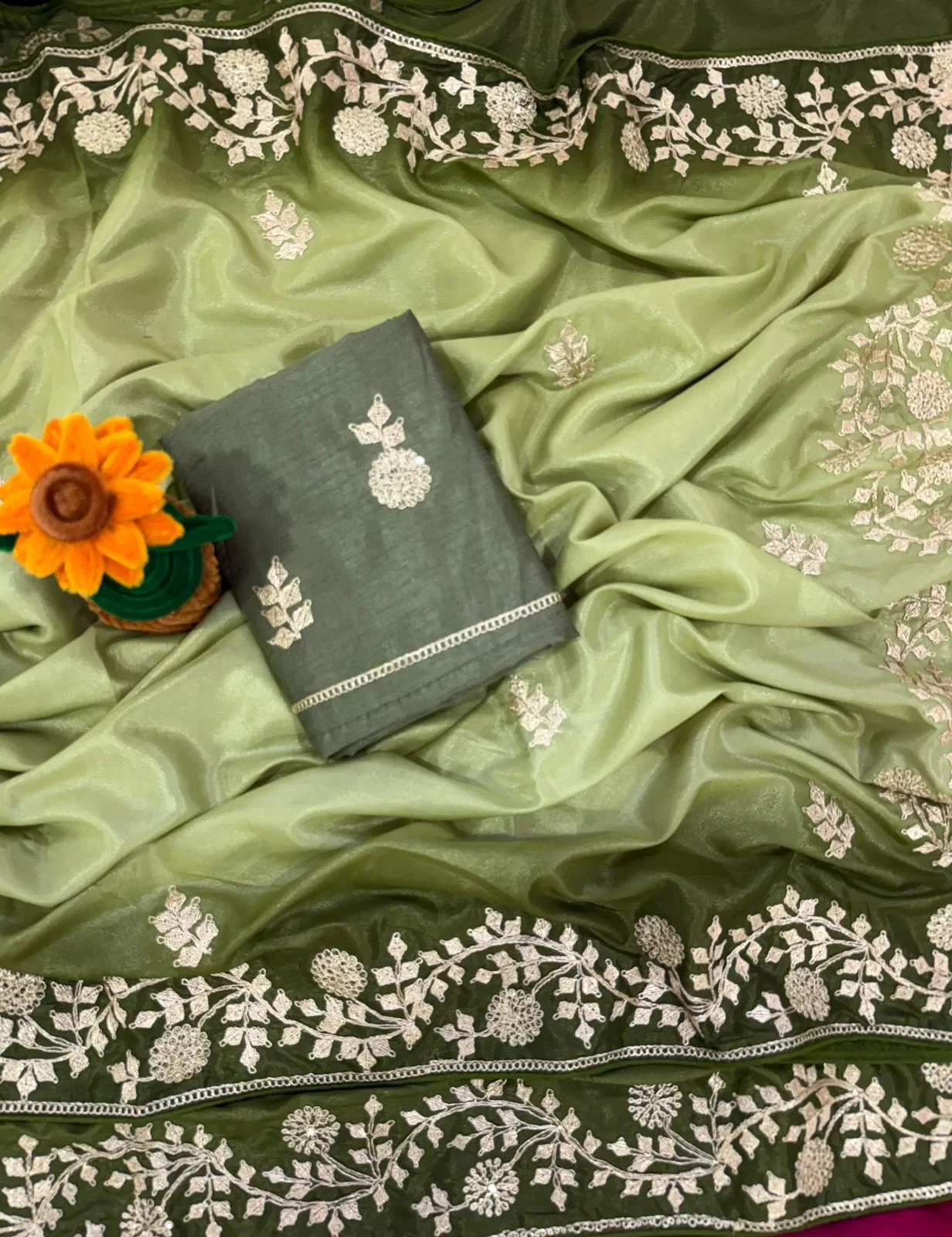 | Blouse Fabric | Satin Banglory with Embroidery |