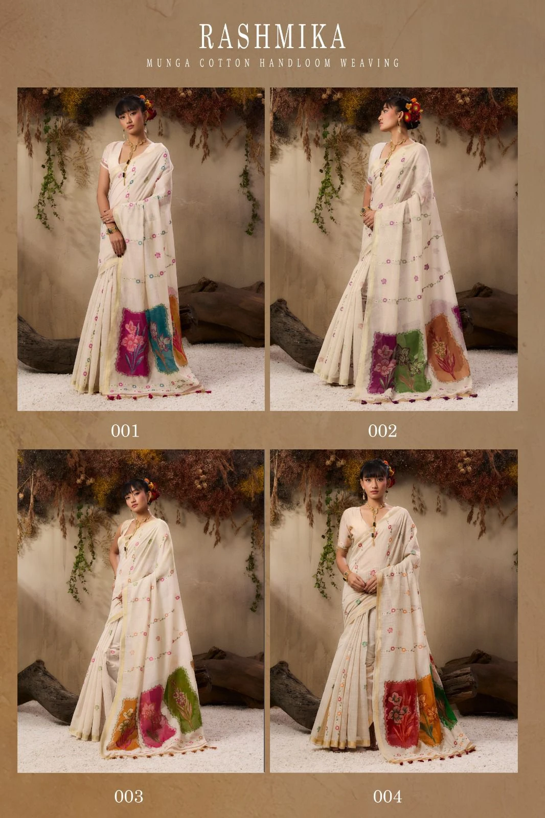 | Product Name | Rashmika 001 to 004 Munga Cotton Handloom Weaving Saree Collection |
