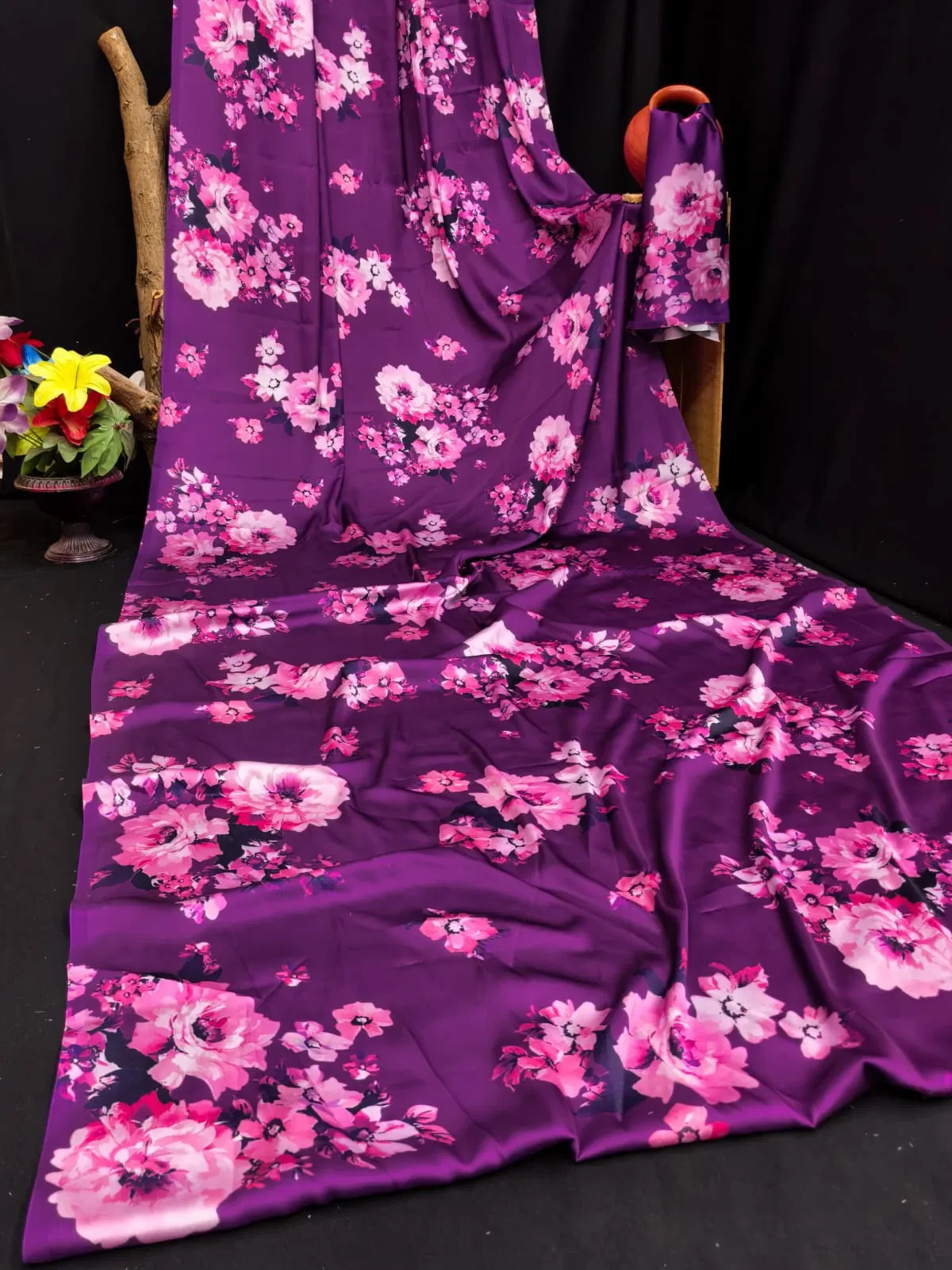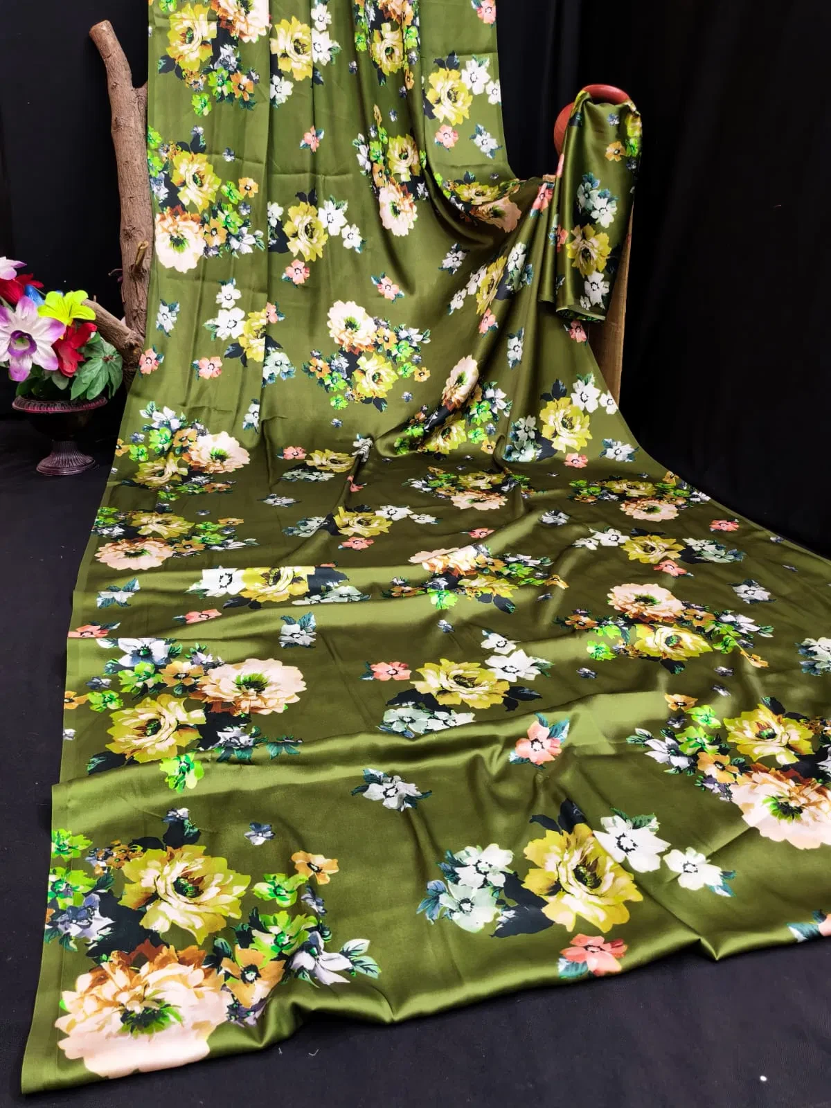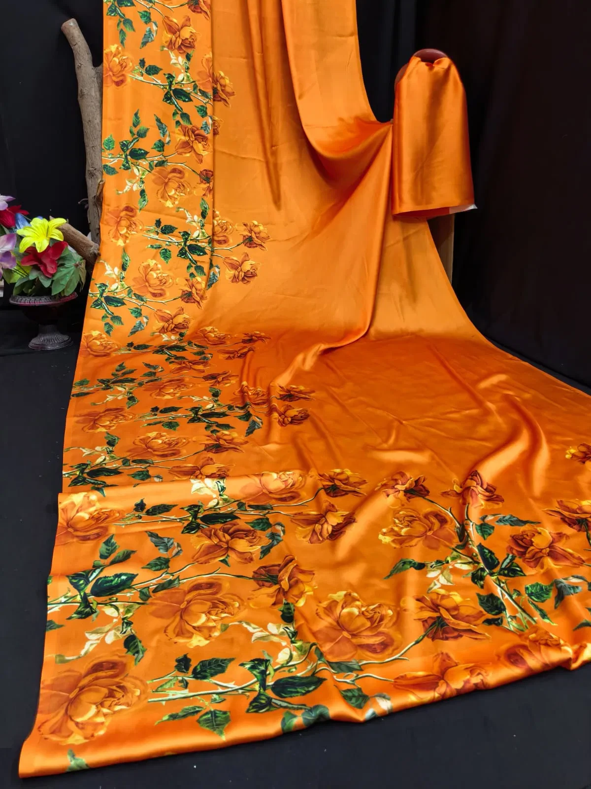 | Saree Fabric | Heavy Japan Satin Floral Printed |