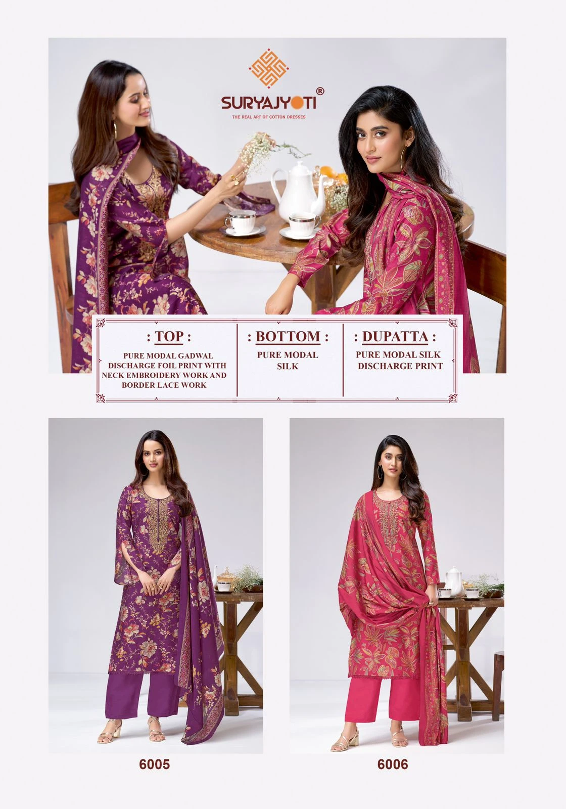 Top Pure Gadwal Discharge Print With Foil And Neck Embroidery & Border Lace Work