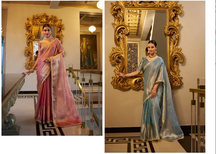| Saree/blouse | Tissue Shimmer with Zari Weaving Work with Sequins Lace Border |