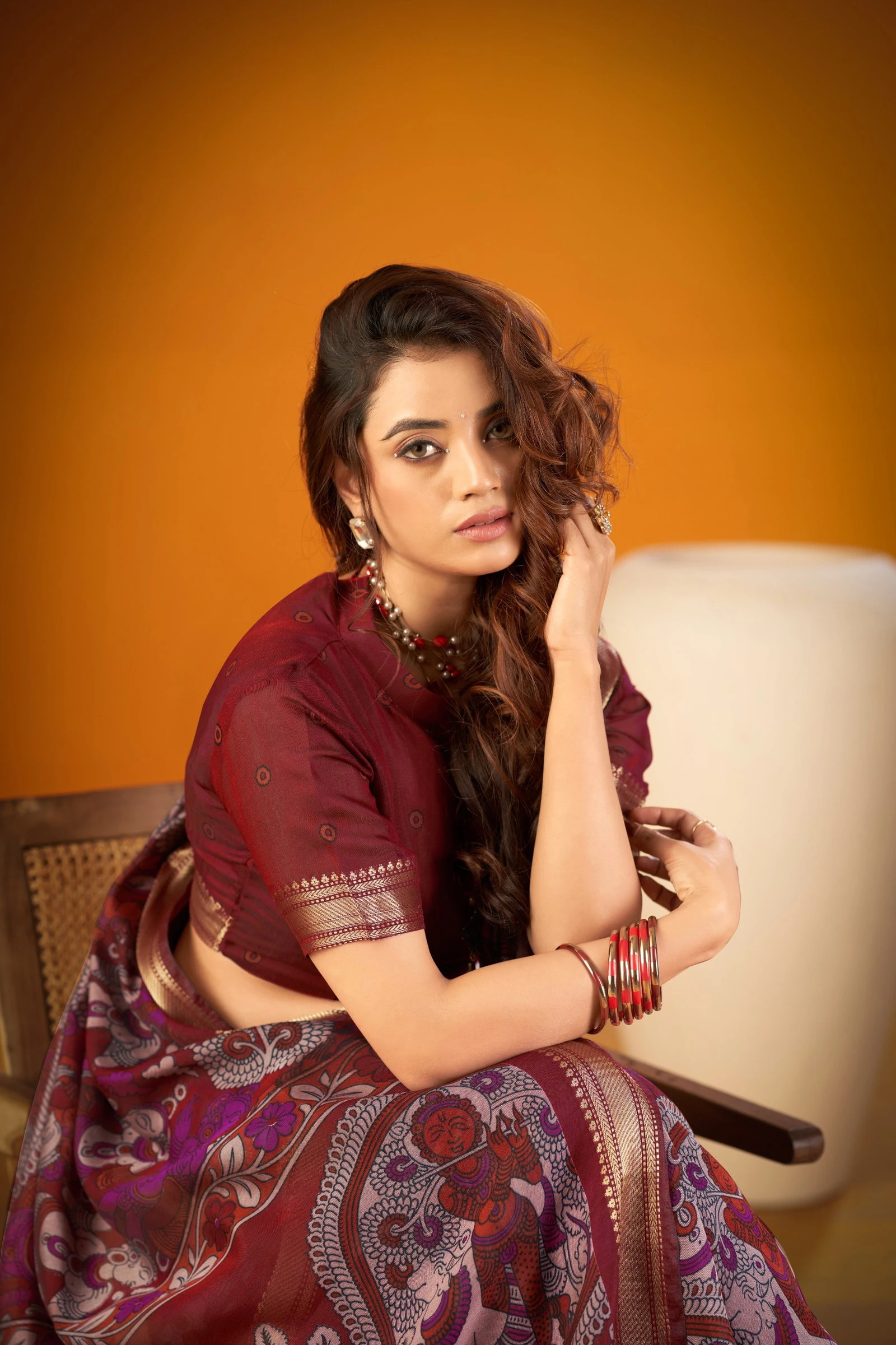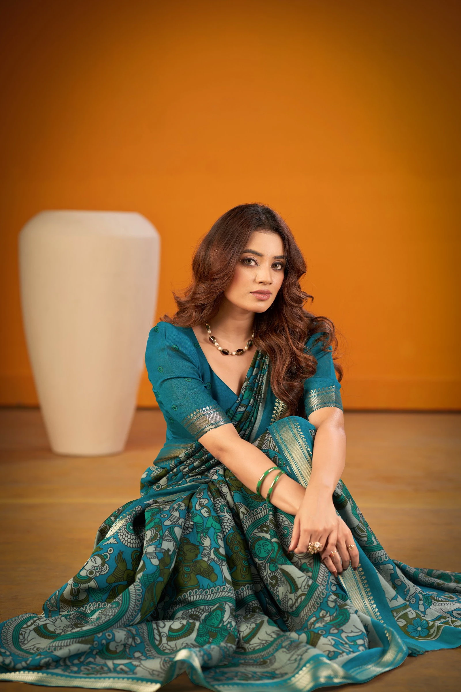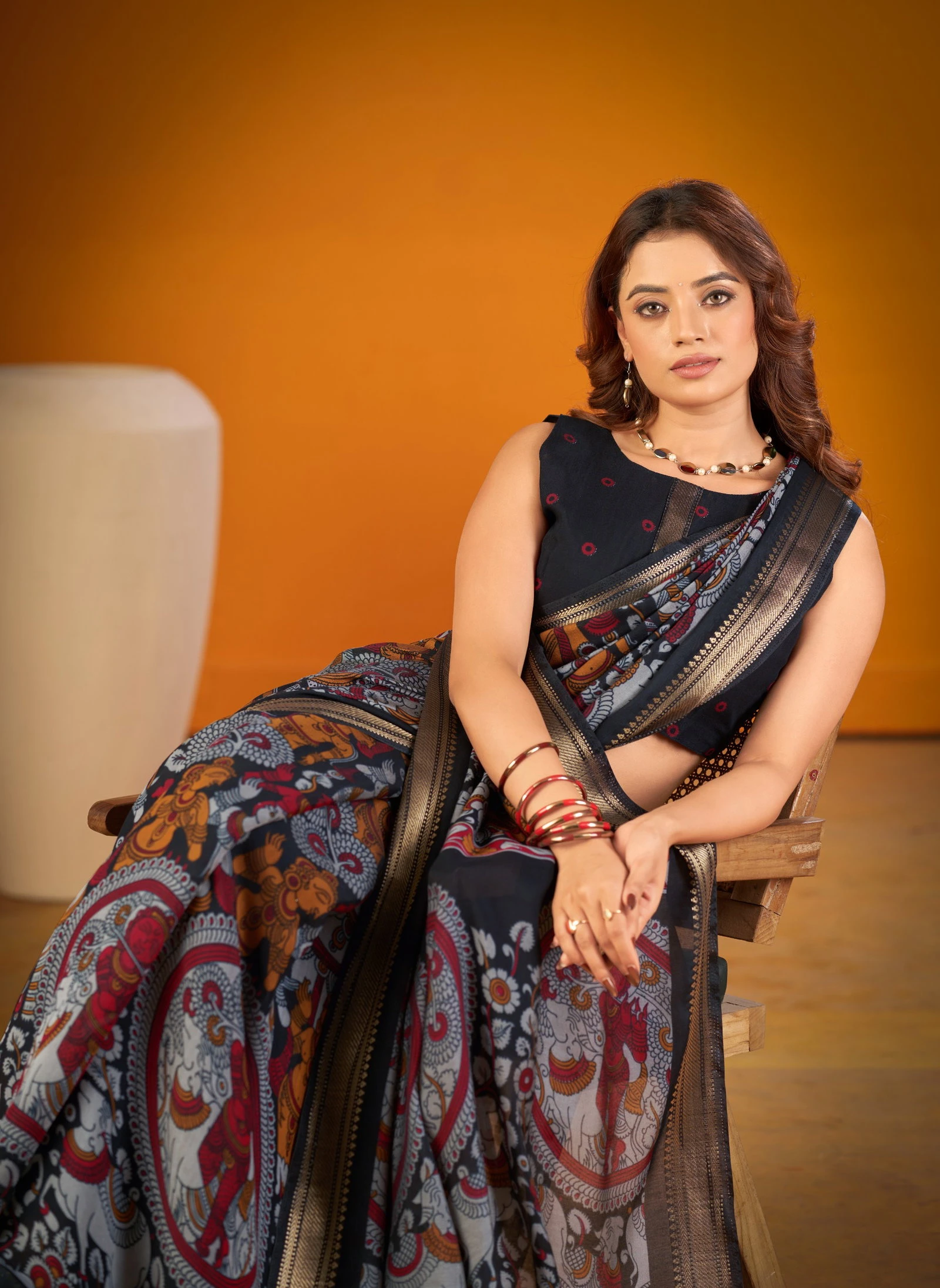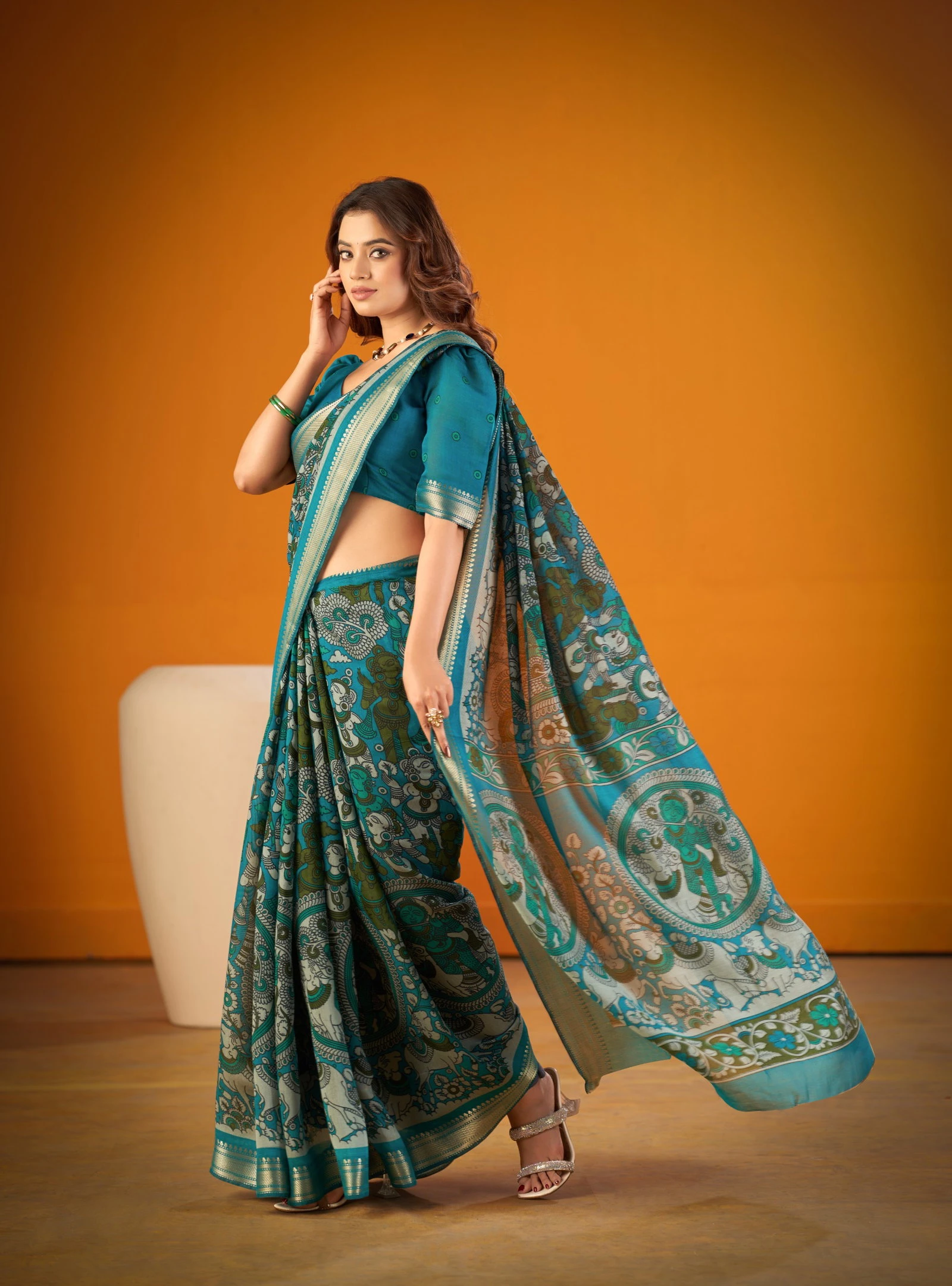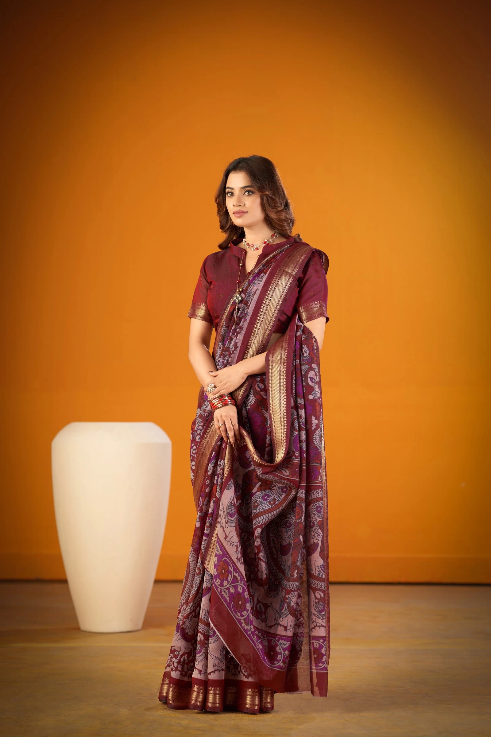 | Saree/blouse | Polyester Viscose Chanderi with Kalamkari Print with Zari Weaving Work |