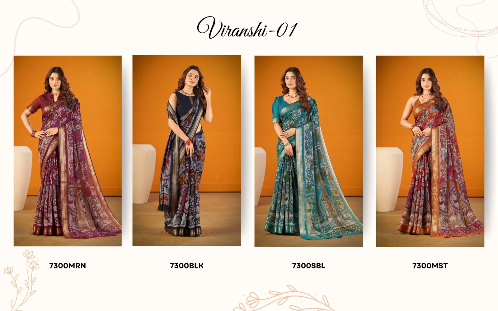 | Product Name | Taraa L 7300 Polyester Viscose Chanderi Kalamkari Printed Sarees |