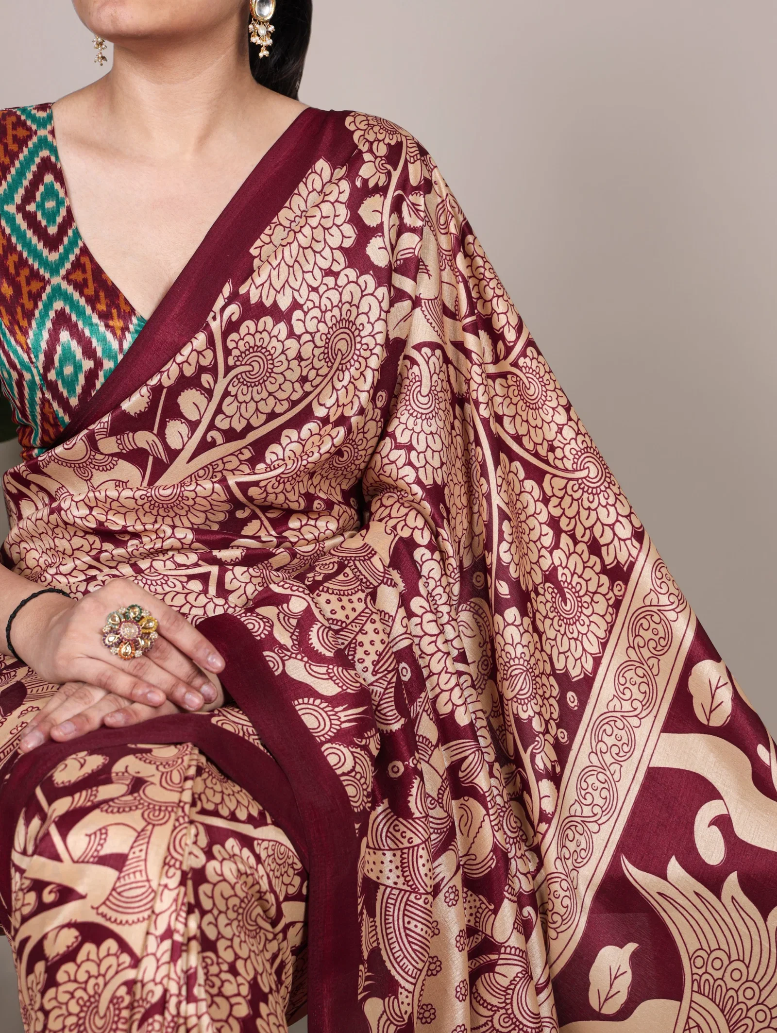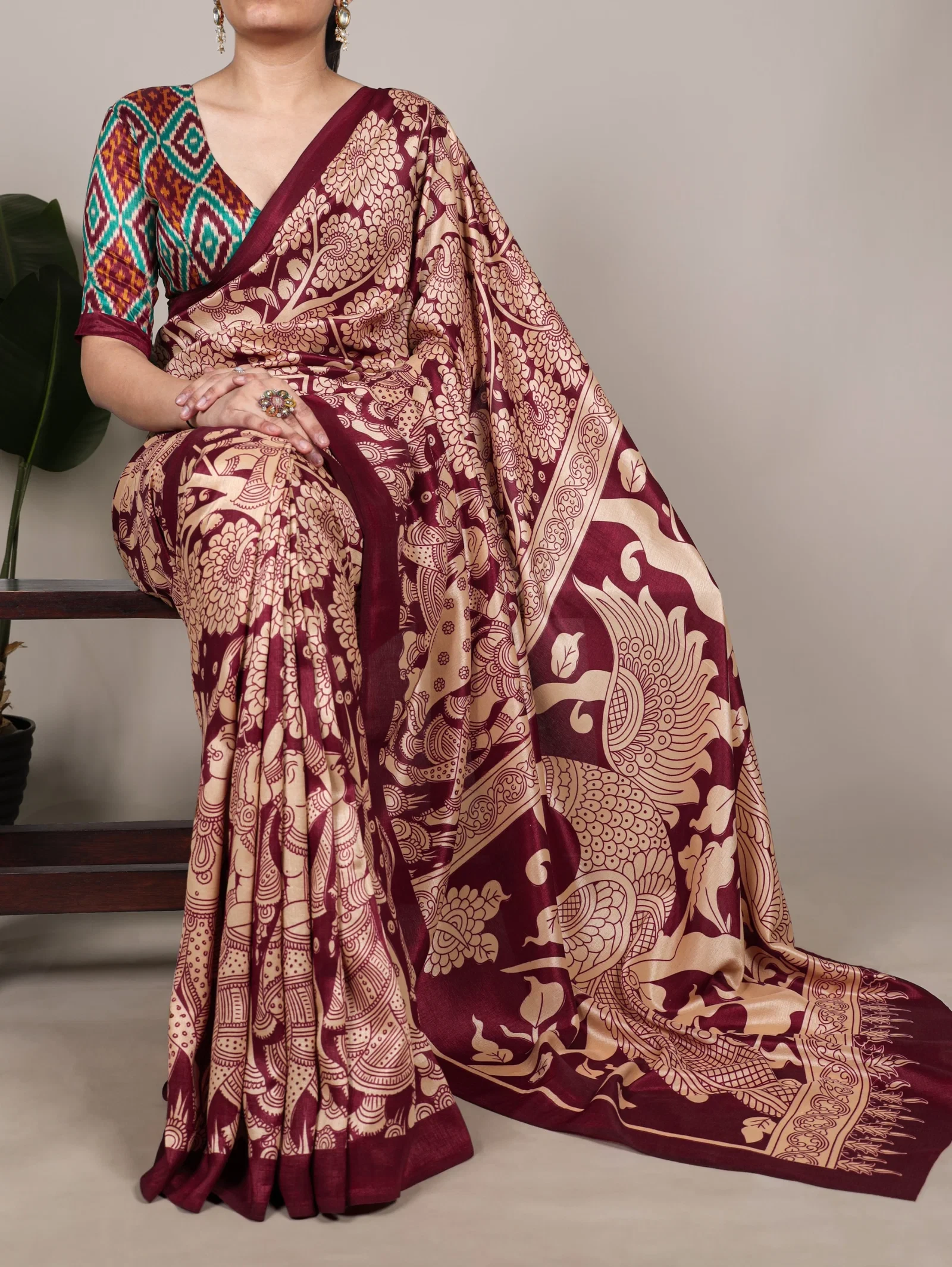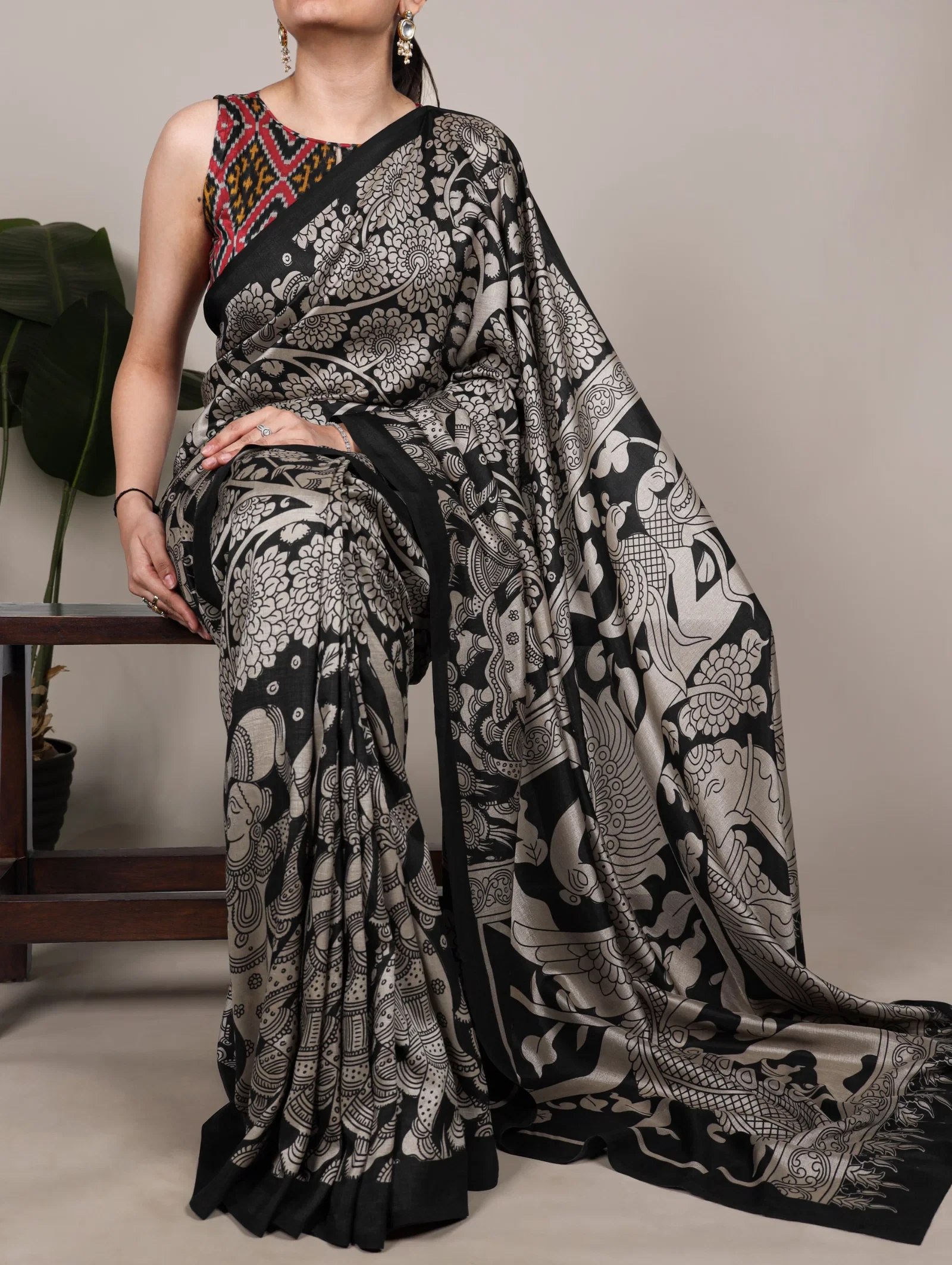 | Saree | Tasar Silk with Kalamkari Print |