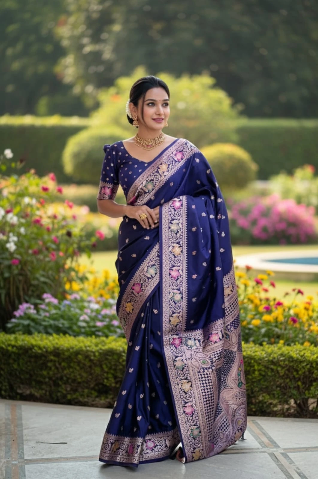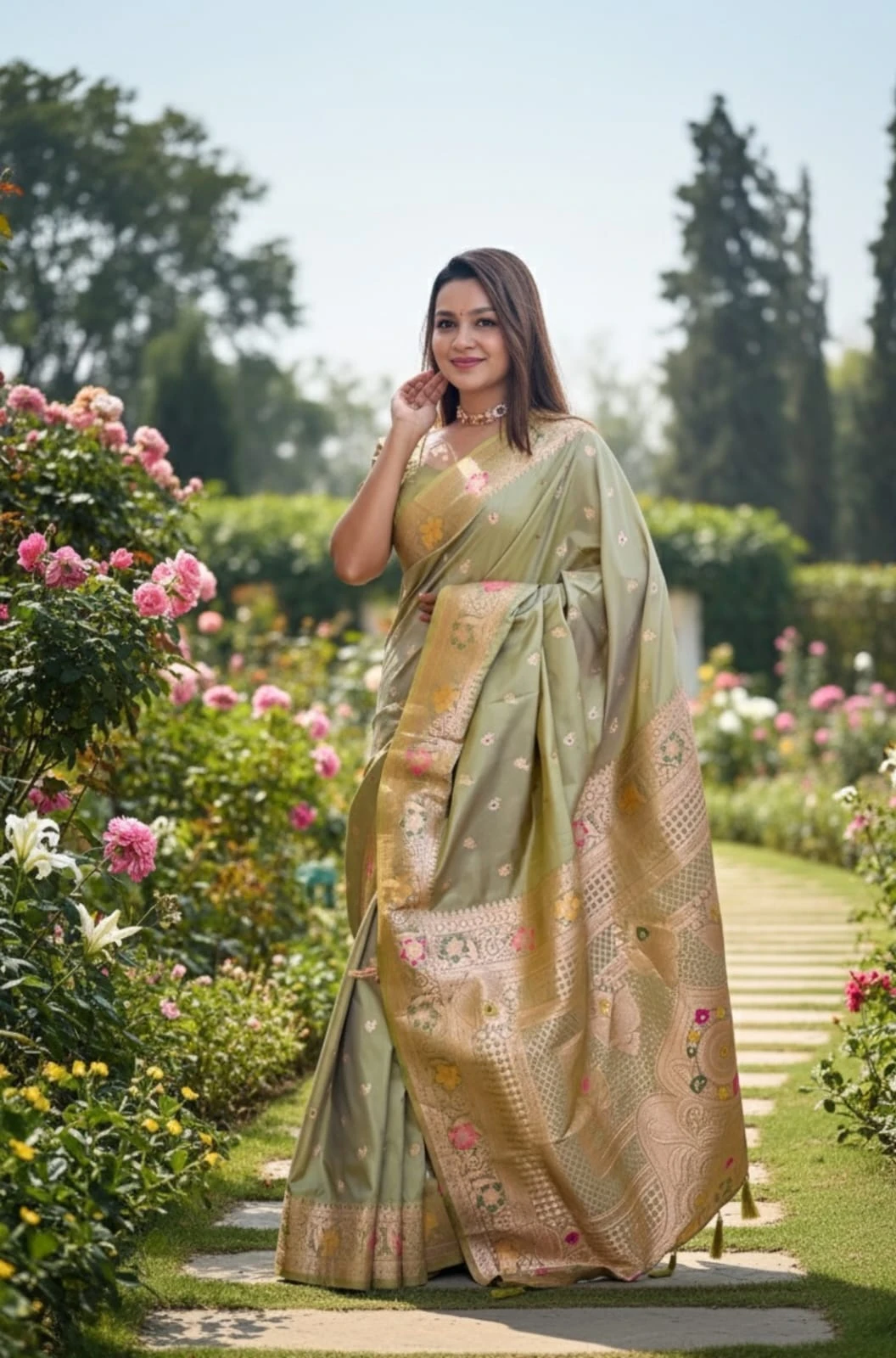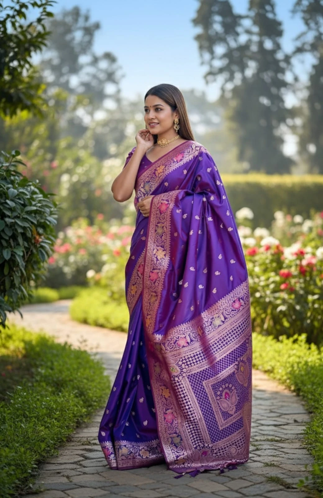 | Fabric | Soft Banarasi Silk with Zari Weaving Meenakari Border Rich Pallu with Meenakari Weawing Border & Tessels Attached |