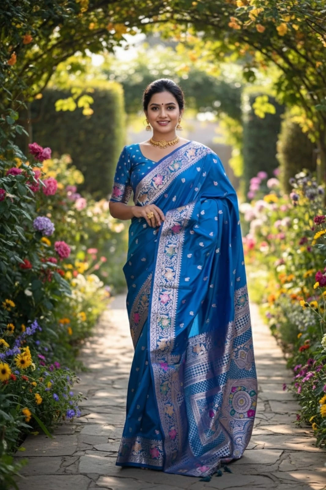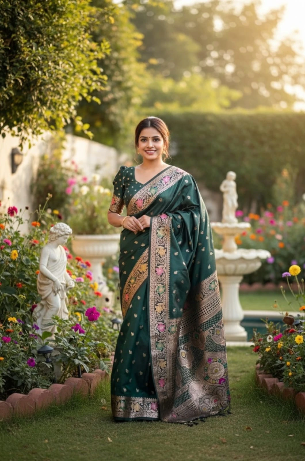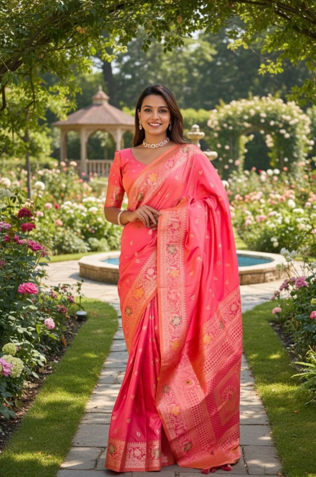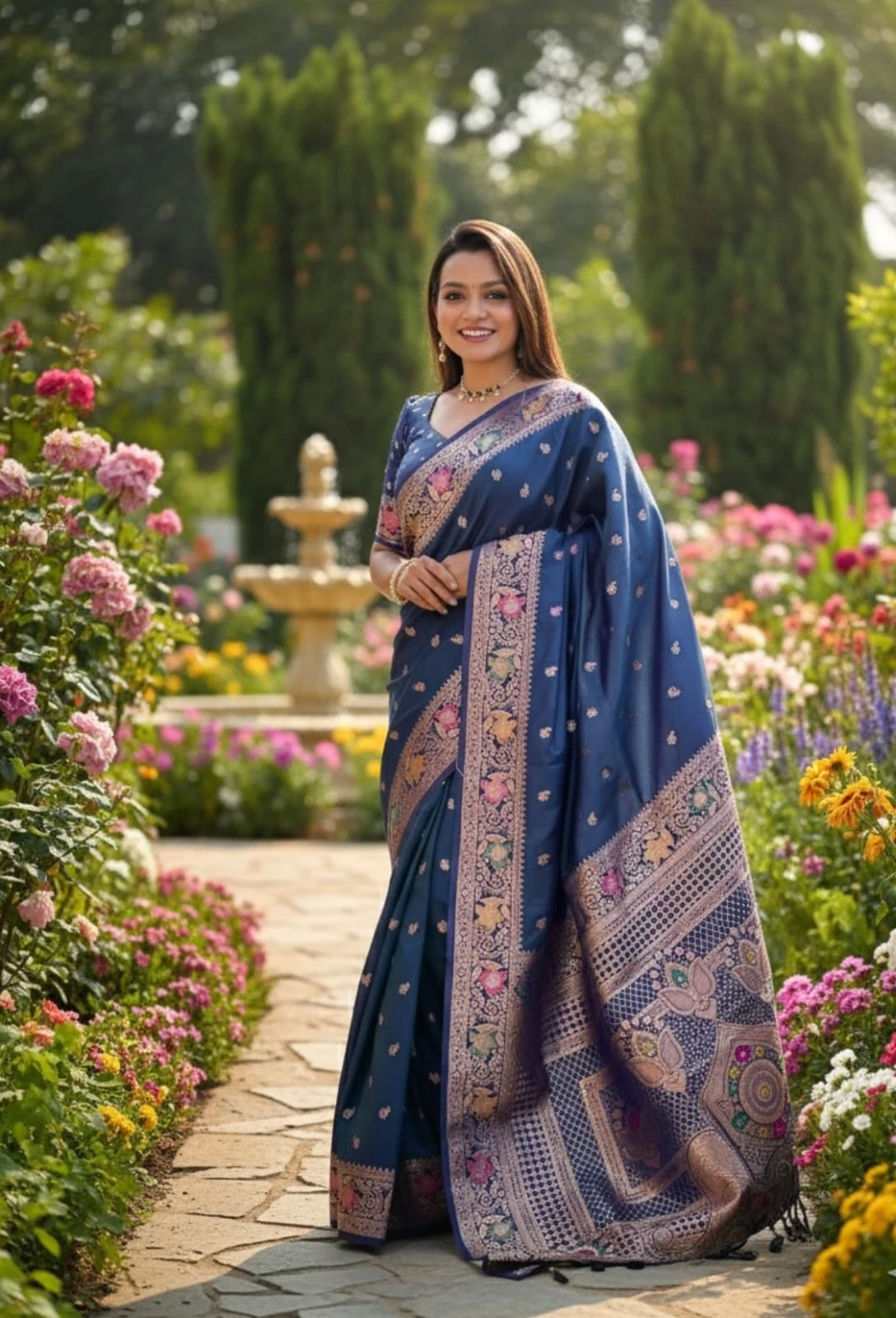 | Fabric | Soft Banarasi Silk with Zari Weaving Meenakari Border Rich Pallu with Meenakari Weawing Border & Tessels Attached |